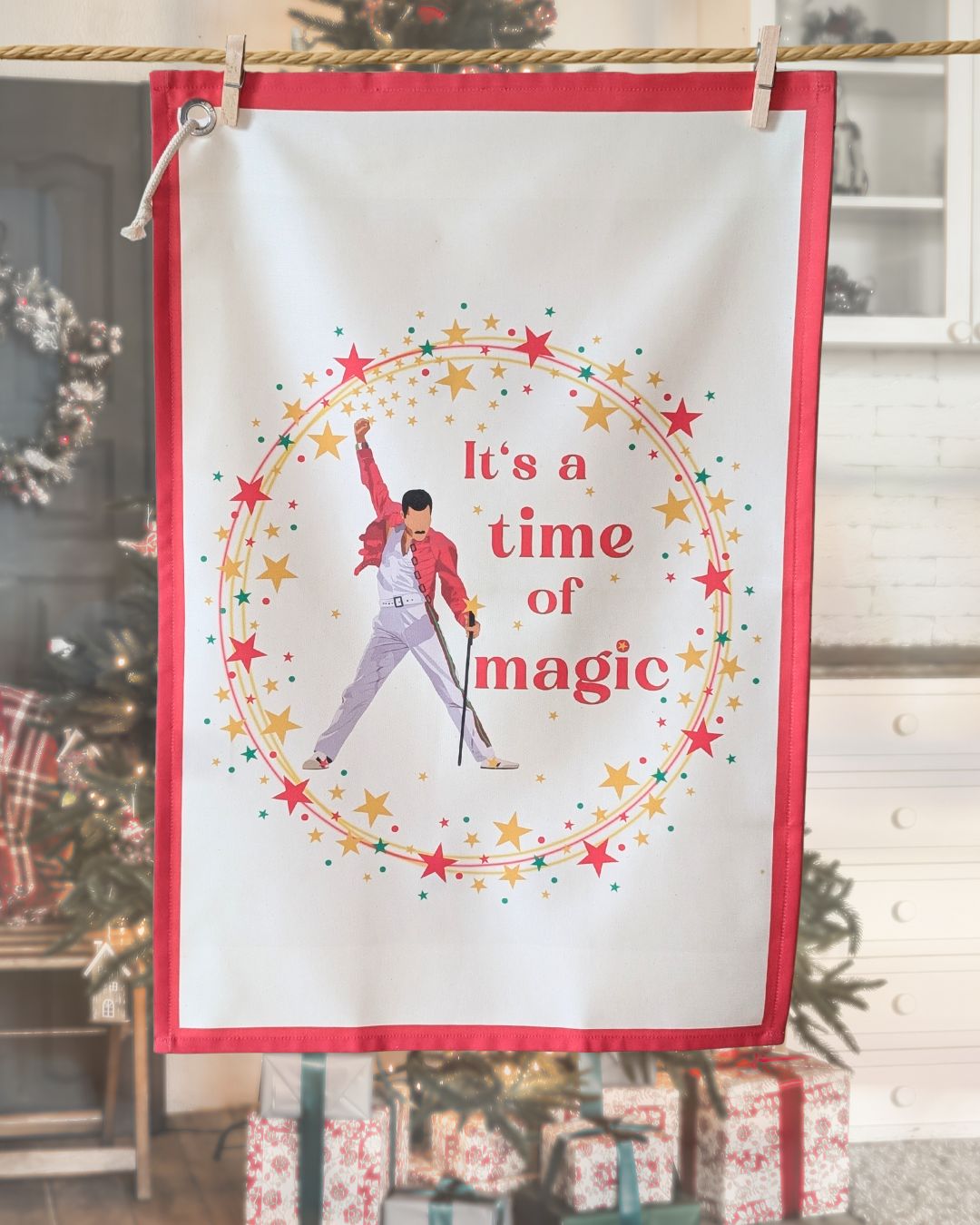 Ein Tuch, das Rock’n’Roll und Weihnachtszauber vereint. It’s a Time of Magic bringt Stimmung, Sterne und Kultcharakter in jede Küche – für alle, die die Feiertage mit ein bisschen Bühne feiern wollen.